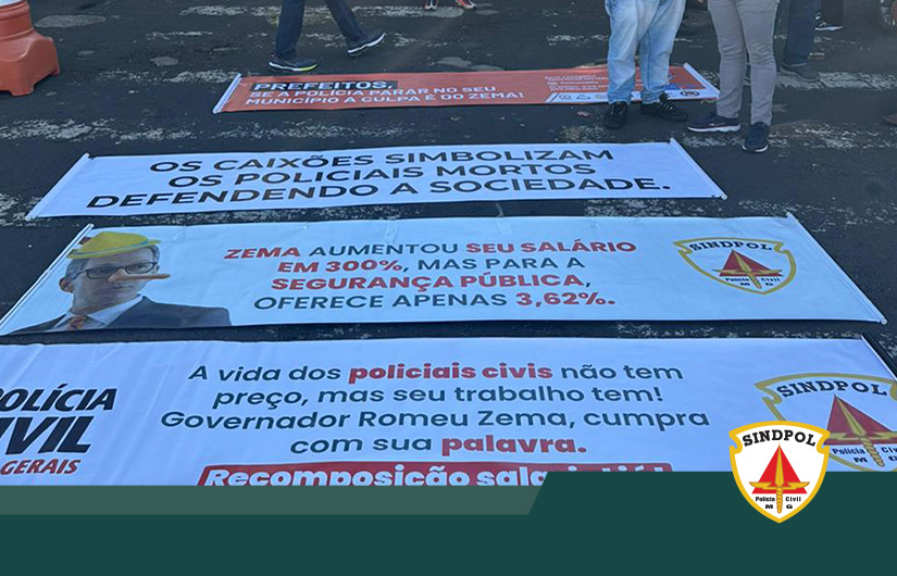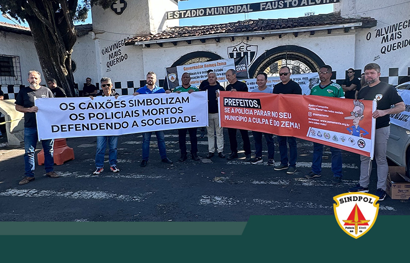 O ato iniciou na porta do Estádio Municipal Fausto Alvim. A categoria levou faixas e caixões simbolizando a covardia e falta de respeito do governador com a Segurança Pública de Minas Gerais.