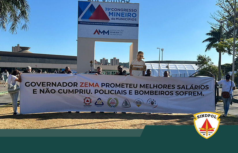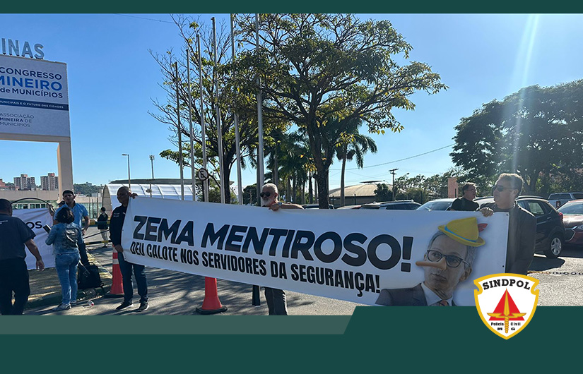Na manhã desta quarta-feira (05/06), o Sindpol/MG, representado pelo Presidente, Wemerson de Oliveira, pela Diretora de Assuntos da Mulher, Vânia Corrêa e demais entidades de classe estiveram na porta do Centro de Exposições em Belo Horizonte (Expominas), onde acontece o 39º Congresso Mineiro de Municípios (AMM), com a presença dos prefeitos mineiros e deputados.
