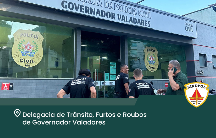 Na parte da manhã, o Sindpol/MG, visitou a 1° Delegacia Regional de Governador Valadares. Já na parte da tarde, a inspeção foi realizada na Delegacia de Proteção à Mulher, Consumidor e Grupos vulneráveis da comarca e na Delegacia de Trânsito, Furtos e Roubos.