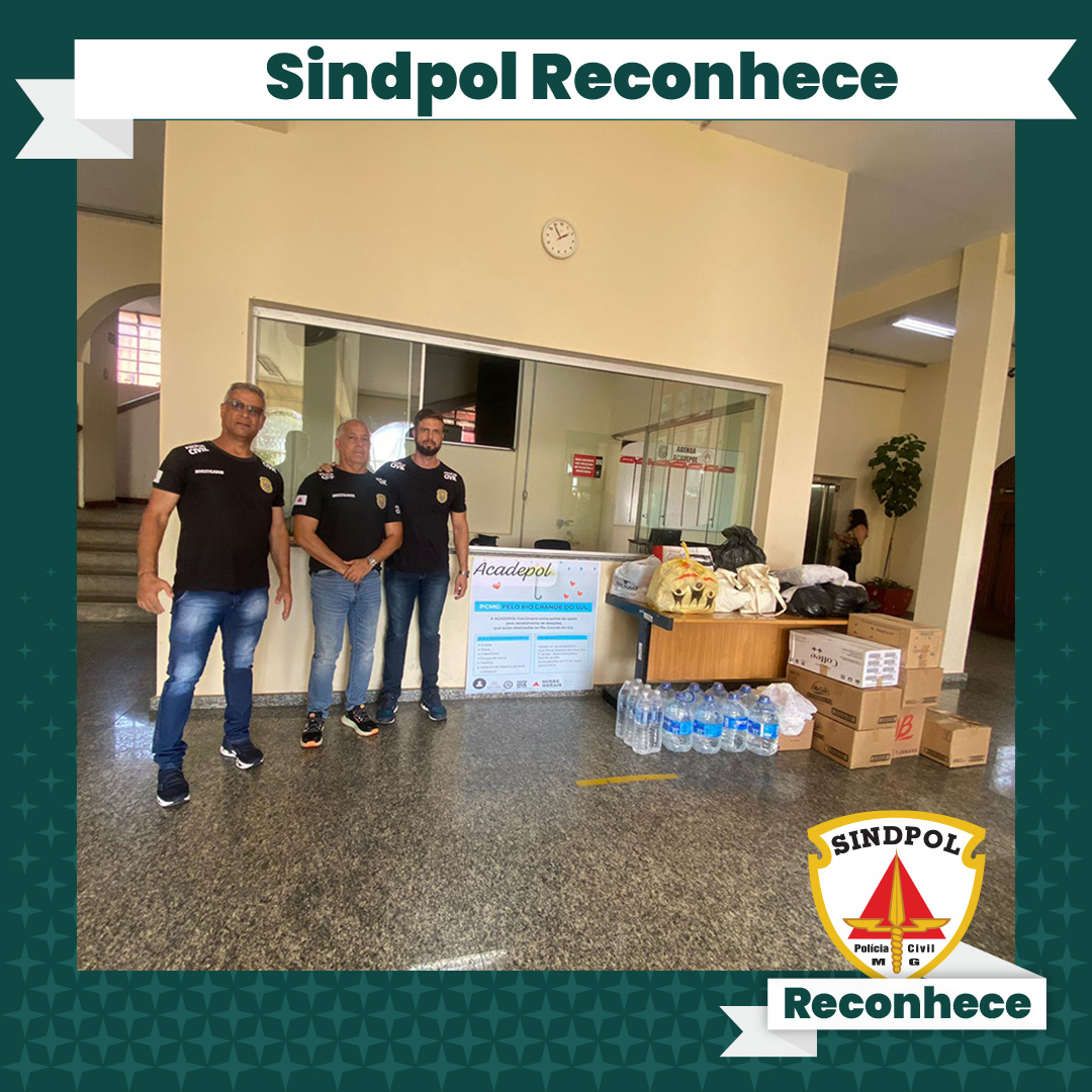 O Sindpol/MG, que sempre valoriza e reconhece seus filiados, vem hoje, ressaltar a importância de ações voluntárias de solidariedade. Os policiais civis do Departamento Estadual de Investigação de Crimes Contra o Patrimônio (DEPATRI), desenvolveram, por iniciativa, uma campanha em prol dos moradores do Rio Grande do Sul, que estão passando por um momento caótico devido as chuvas.