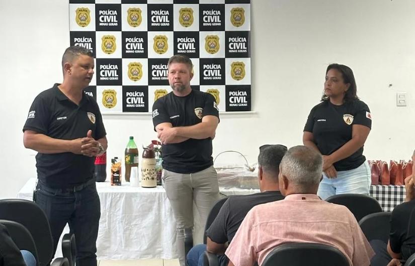 Na tarde desta quarta-feira (08/05), o Sindpol/MG, representado pelo Presidente Wemerson Oliveira, pelo Diretor de Mobilização, Breno Almeida e pela Diretora de Assuntos da Mulher, Vânia Côrrea, marcou presença no bate-papo realizado no Auditório da sede do 15° Departamento de Polícia Civil de Teófilo Otoni a convite do Diretor Regional de Teófilo Otoni, Cláudio dos Santos Borges.